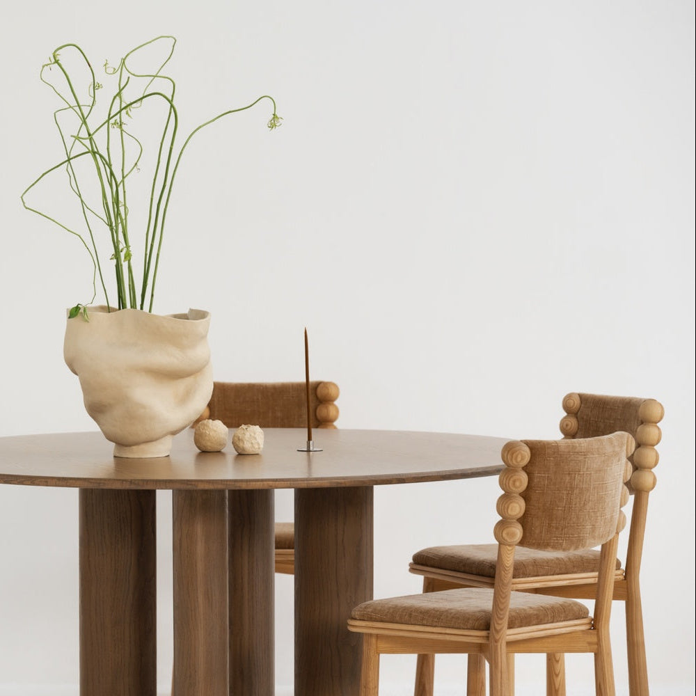 Rounded forms, warm woods, and tactile fabrics come together with quiet precision. Every detail is intentional. Contemporary refinement, vintage soul.